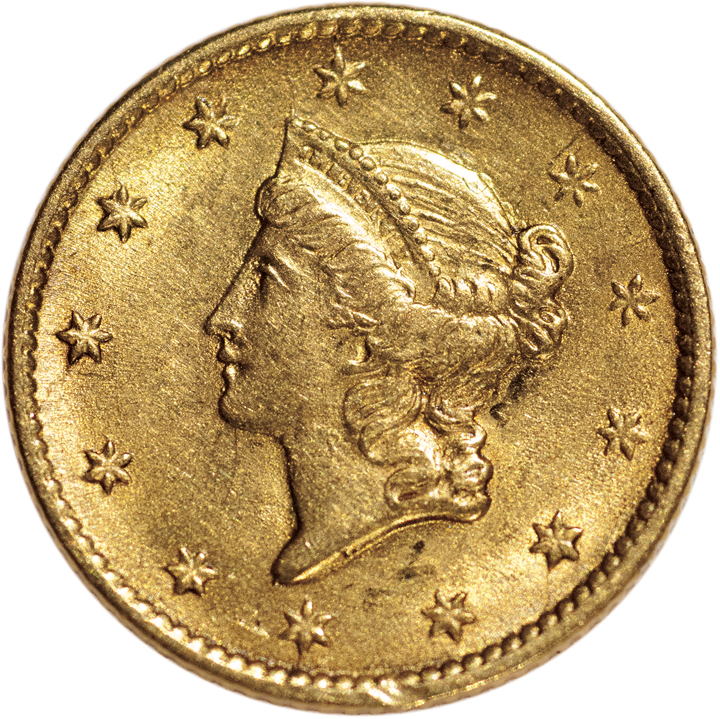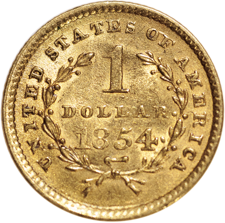 1854 Liberty Head $1 Gold. Type 1. Mint State.