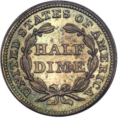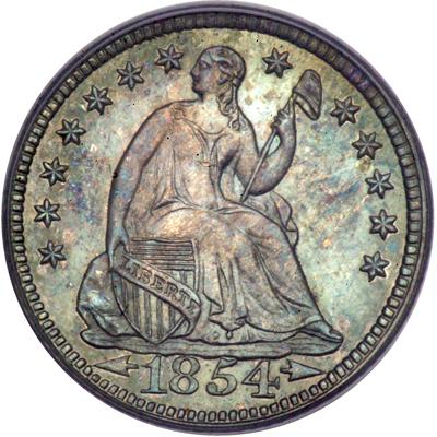 This is a very rare issue in Proof. The precise mintage of Proof Half Dimes struck in 1854 is unknown. Breen simply stated in his Proofs encyclopedia that they were very rare. The Pittman cataloger, when that example was sold, gave his opinion that 15 to 20 survived, a view that is generally held among specialists. Pop 4; none finer at PCGS. (PCGS # 4432).