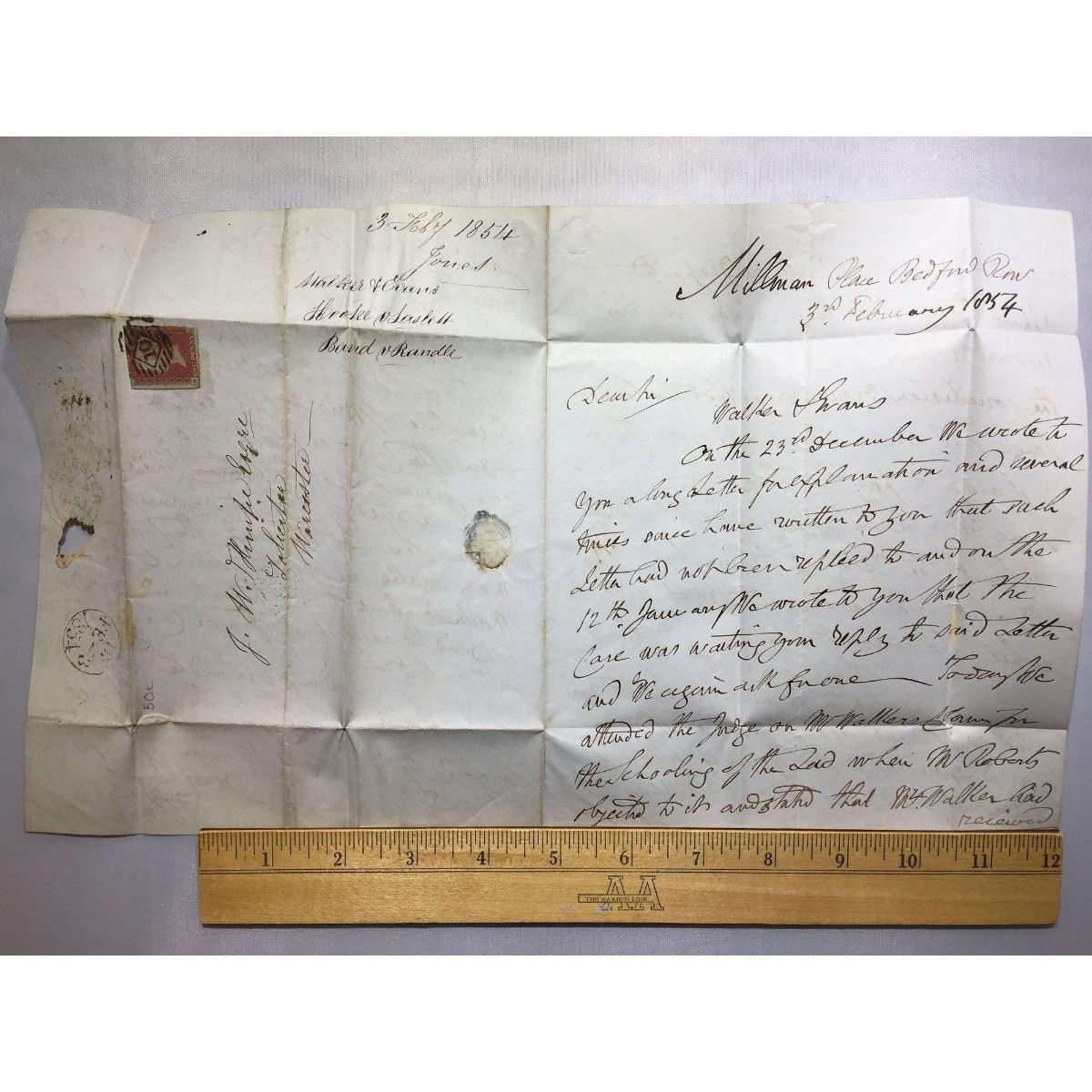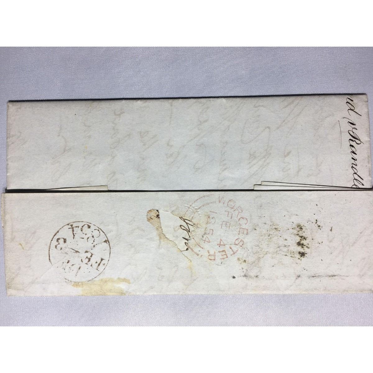 1854 Worcester stamped original iron gall handwritten letter in an envelope now in a protective sleeve with a British pennystamp.