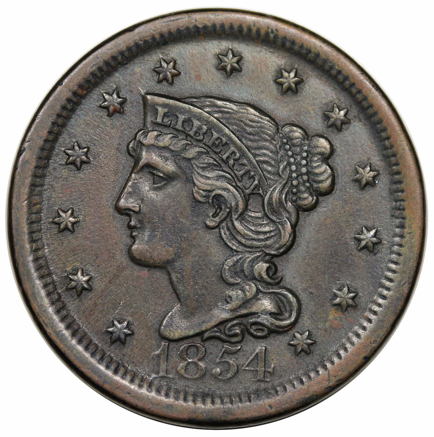 Medium olive brown with darker color on the portrait and some of the protected areas. Minor crud in the details, mostly just harmless dirt, but there is a little rough patch at NT of CENT. M-LDS (b). Comes with a Grellman card.