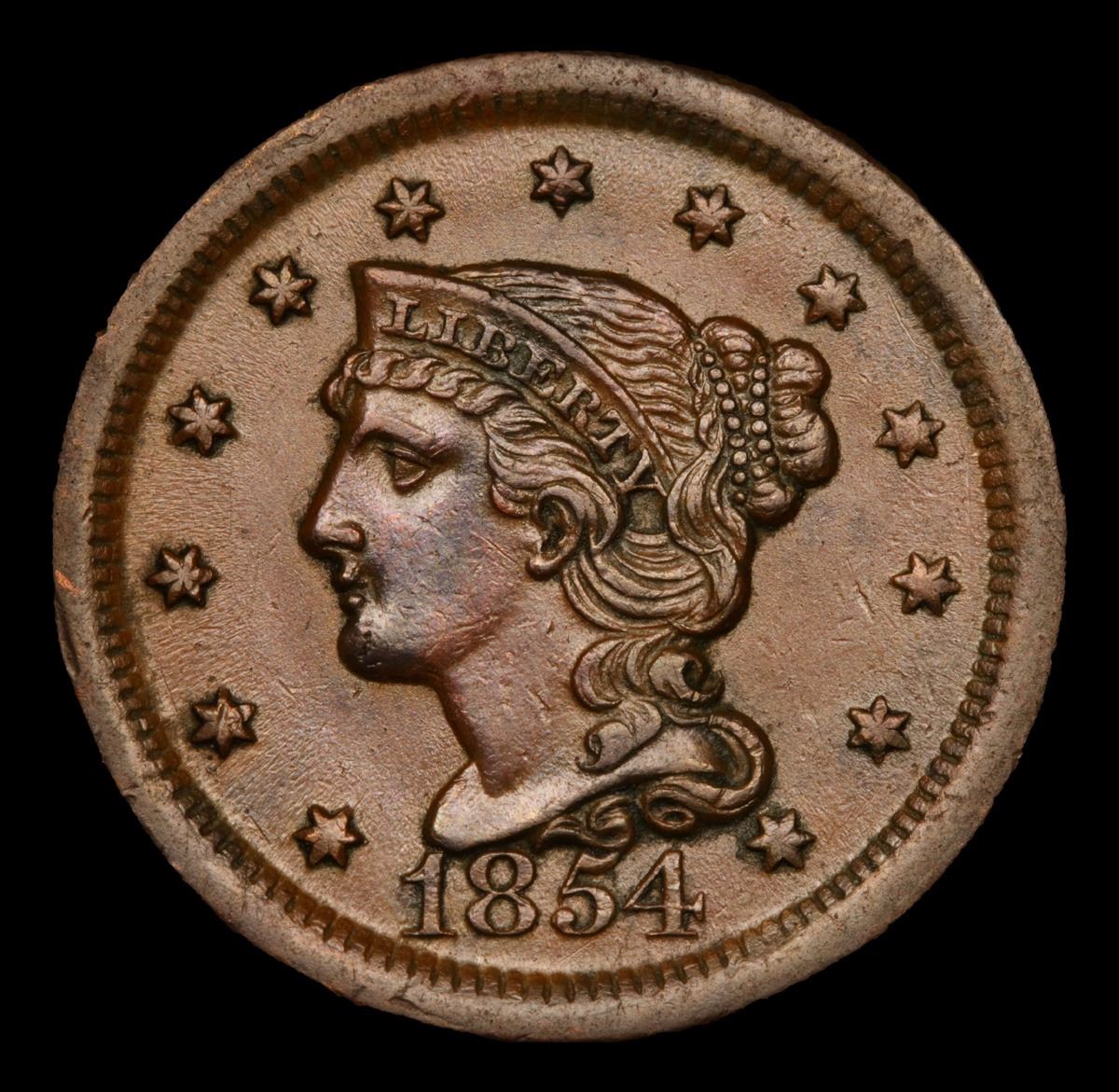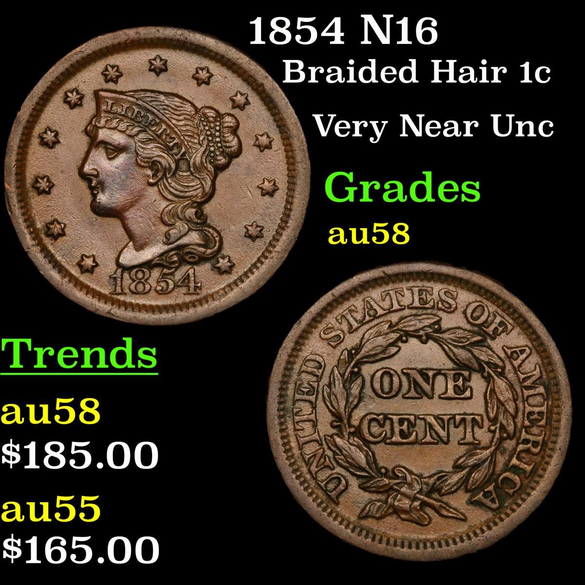 1854 N16 Braided Hair Large Cent 1c Grades Choice AU/BU Slider.
