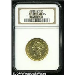 <table><tbody><tr><td><table> <TR><TD width="100%"><TABLE cellSpacing=1 cellPadding=3 width="100%" border=0><TBODY><TR><TD width="100%" bgColor=#79735c><FONT face=arial color=#ffffff size=3><B>Description</B> </FONT></TD></TR><TR><TD width="100%" bgColor=#ffffff><FONT face=arial size=2><B>1854-O $10 Large Date AU55 NGC.</B></I> The 1854-O Large Date was produced with the date logotype for the Seated Dollar, being the rarer of the two date variants of this O-mint issue. Examples of the Large Date variety are typically ill-defined, often being struck from a sunken die, but this bright yellow-gold example is bold in all areas save for the obverse star centrils. Population: 21 in 55, 28 finer (11/03). </FONT></TD></TR></TBODY></TABLE></TD></TR></TBODY></TABLE><BR><A name=PricesRealized></A><TABLE cellSpacing=0 cellPadding=0 width="100%" bgColor=#000000 border=0><TBODY><TR><TD width="100%"><TABLE cellSpacing=1 cellPadding=3 width="100%" border=0><TBODY><TR><TD width="100%" bgColor=#79735c><A name=PR><FONT face=arial color=#ffffff size=3><B>Previous Prices from Heritage Auctions</B> </FONT></A></TD></TR><TR><TD bgColor=#f6f6ed><TABLE cellSpacing=0 cellPadding=0 width="100%" border=1><TBODY><TR><TD align=middle width="33%"><B>Date</B></TD><TD align=middle width="33%"><B>Service</B></TD><TD align=middle width="33%"><B>Price</B></TD></TR><TR bgColor=whitesmoke><TD width="33%"><B>05/27/2001</B></TD><TD width="33%">NGC</TD><TD width="33%">$2,415.00</TD></TR></TBODY></TABLE></TD></TR><TR><TD bgColor=#ffffff><FONT face=arial size=1 ?>PLEASE NOTE: All prices realized reflect the final hammer price PLUS the buyer's premium in auctions that charge a buyer's premium. Each item has a notation at the top of the listing indicating whether that lot included a buyer's premium. Example: A item that sells with a final hammer price of $100 and a 20% buyer's premium will display with a price realized of $120. All information listed is intended to be as accurate as possible, but errors are possible. Please use this guide carefully and inform us of any inaccuracies. </FONT></TD></TR></TBODY></TABLE></TD></TR></TBODY></TABLE><BR><TABLE cellSpacing=0 cellPadding=0 width="100%" bgColor=#000000 border=0><TBODY><TR><TD width="100%"><TABLE cellSpacing=1 cellPadding=3 width="100%" border=0><TBODY><TR><TD width="100%" bgColor=#79735c colSpan=6><FONT face=arial color=#ffffff size=3><B>Price Guide*</B> </FONT></TD></TR><TR bgColor=#f6f6ed><TD align=middle><B>Grade</B> </TD><TD align=middle><B>Coin World<BR>(Trends)</B> </TD><TD align=middle><B>Numismedia<BR>Retail</B> </TD><TD align=middle><B>Numismedia<BR>Wholesale</B> </TD><TD align=middle><B>Coin<BR>Universe</B> </TD><TD align=middle><B>Heritage<BR>Value Index</B> </TD></TR><TR bgColor=#ffffff><TD align=middle>53</TD><TD align=right>---</TD><TD align=right>---</TD><TD align=right>---</TD><TD align=right>---</TD><TD align=right>$1,762.50</TD></TR><TR style="FONT-WEIGHT: bold" bgColor=#cccfdd><TD align=middle>55</TD><TD align=right>$3,700.00</TD><TD align=right>---</TD><TD align=right>---</TD><TD align=right>$3,575.00</TD><TD align=right>$2,546.25</TD></TR><TR bgColor=#ffffff><TD align=middle>58</TD><TD align=right>$4,900.00</TD><TD align=right>---</TD><TD align=right>---</TD><TD align=right>---</TD><TD align=right>$3,430.00</TD></TR><TR bgColor=#ffffff><TD colSpan=6><FONT size=1>*All information listed is intended to be as accurate as possible, but errors are possible. No item may be returned or refused based on this information which is provided as a service to our customers. You should contact each pricing source directly to determine the accuracy of this information. </FONT></TD></TR></TBODY></TABLE></TD></TR></TBODY></TABLE><BR><TABLE cellSpacing=0 cellPadding=0 width="100%" bgColor=#000000 border=0><TBODY><TR><TD width="100%"><TABLE cellSpacing=1 cellPadding=3 width="100%" border=0><TBODY><TR><TD width="100%" bgColor=#79735c><FONT face=arial color=#ffffff size=3><B>Population Guide</B> </FONT></TD></TR><TR bgColor=#ffffff><TD align=middle><!-- Begin Output of Population Grid--><TABLE cellSpacing=0 cellPadding=0 width="100%" border=0><TBODY><TR><TD vAlign=center><TABLE cellSpacing=0 width="100%" border=1 cellsadding="3"><TBODY><TR><TD vAlign=center><TABLE cellSpacing=0 cellPadding=3 width="100%" border=1><TBODY><TR><TD vAlign=center align=middle bgColor=#f0f1e8 colSpan=2 <CENTER><FONT face=Arial size=2><B>PCGS Pop </B></FONT><CENTER></CENTER></TD><TD vAlign=center align=middle bgColor=#f0f1e8 colSpan=2><CENTER><FONT face=Arial size=2><B>NGC Pop</B></CENTER></FONT></TD></TR><TR><TD vAlign=center><FONT face=Arial size=2>(55)</FONT> </TD><TD vAlign=center align=right><FONT face=Arial size=2>8</FONT> </TD><TD vAlign=center><FONT face=Arial size=2>(55)</FONT> </TD><TD vAlign=center align=right><FONT face=Arial size=2>21</FONT> </TD></TR><TR><TD vAlign=center><FONT face=Arial size=2>(>55)</FONT> </TD><TD vAlign=center align=right><FONT face=Arial size=2>15</FONT> </TD><TD vAlign=center><FONT face=Arial size=2>(>55)</FONT> </TD><TD vAlign=center align=right><FONT face=Arial size=2>28</FONT> </TD></TR></TBODY></TABLE></TD></TR></TBODY></TABLE></TD></TR></TBODY></TABLE><!-- End Output of Population Grid--></TD></TR></TBODY></TABLE></TD></TR></TBODY></TABLE><BR><TABLE cellSpacing=0 cellPadding=0 width="100%" bgColor=#000000 border=0><TBODY><TR> <font color='#000000'><span style='background-color: #FFFFFF'><td bgcolor='#FFFFFE'> Important notice: Heritage usually auctions material at the rate of 200-250 lots per hour. On some occasions eBay Live bid software or the Internet may not be able to keep up with the pace of the auction. We recommend placing a realistic absentee bid now as insurance to avoid disappointment. Occasionally the auctioneer may eliminate or reject an eBay Live bid, and the auctioneer may also reopen a lot after the close of the eBay live bidding (usually because we missed an audience bid), and may reject your bid even if it shows you as the winning bidder. By 