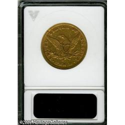 <B>1854-O $10 Small Date--Rim Damaged, Cleaned--ANACS. AU Details, Net XF45.</B></I> The reverse rim reveals a few small punches and cuts, and bright honey-gold surfaces exhibit some scattered light abrasions and wispy hairlines. This issue is typically weak in the centers, but the present example has decent detail, with just a touch of weakness in Liberty's hair curls. Lot:8749