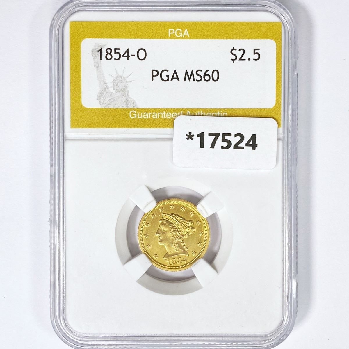 1854-O $2.50 Gold Quarter Eagle PGA MS60