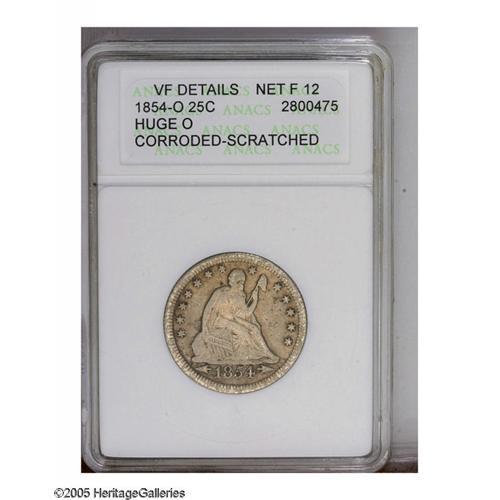 1854-O 25C Huge O--Corroded, Scratched--ANACS. VF Deta 1854-O[25C] Huge O--Corroded, Scratched--ANAC