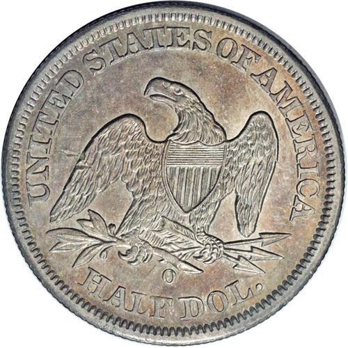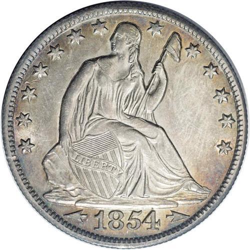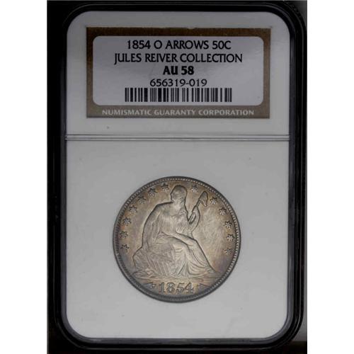 1854-O 50C Arrows AU58 NGC. Dusky coffee-brown toning 1854-O[50C] Arrows AU58 NGC.
