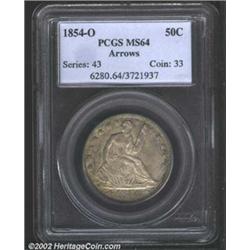 1854-O 50C Arrows MS64 PCGS. A perfect coin for inclusion in a near-Gem type set, this olive-gray ex