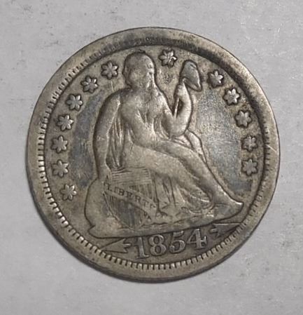 1854-O ARROWS LIBERTY SEATED DIME VF/XF