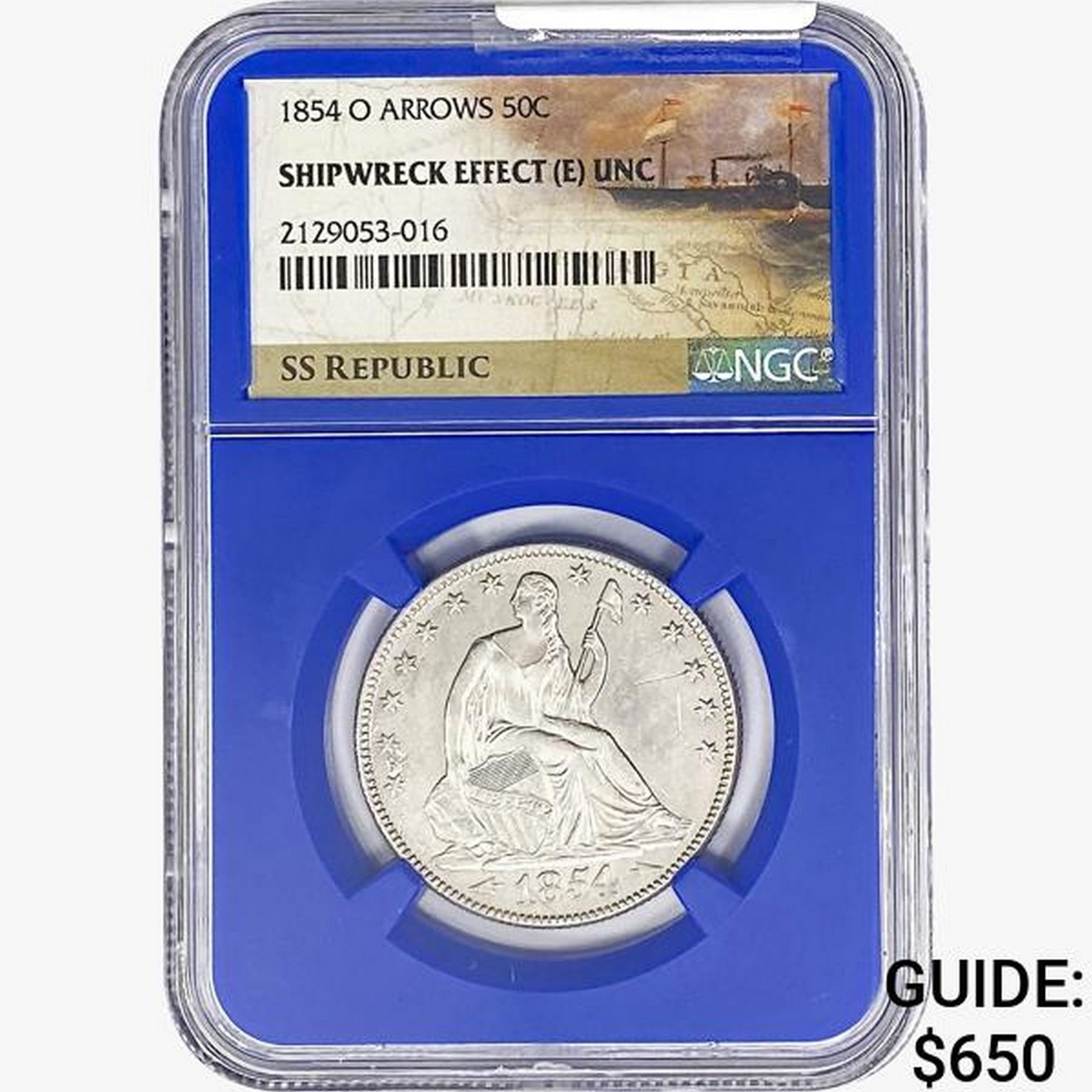 1854-O ARWS SL. 50C Ship. Effect W/ Book Set NGC UNC