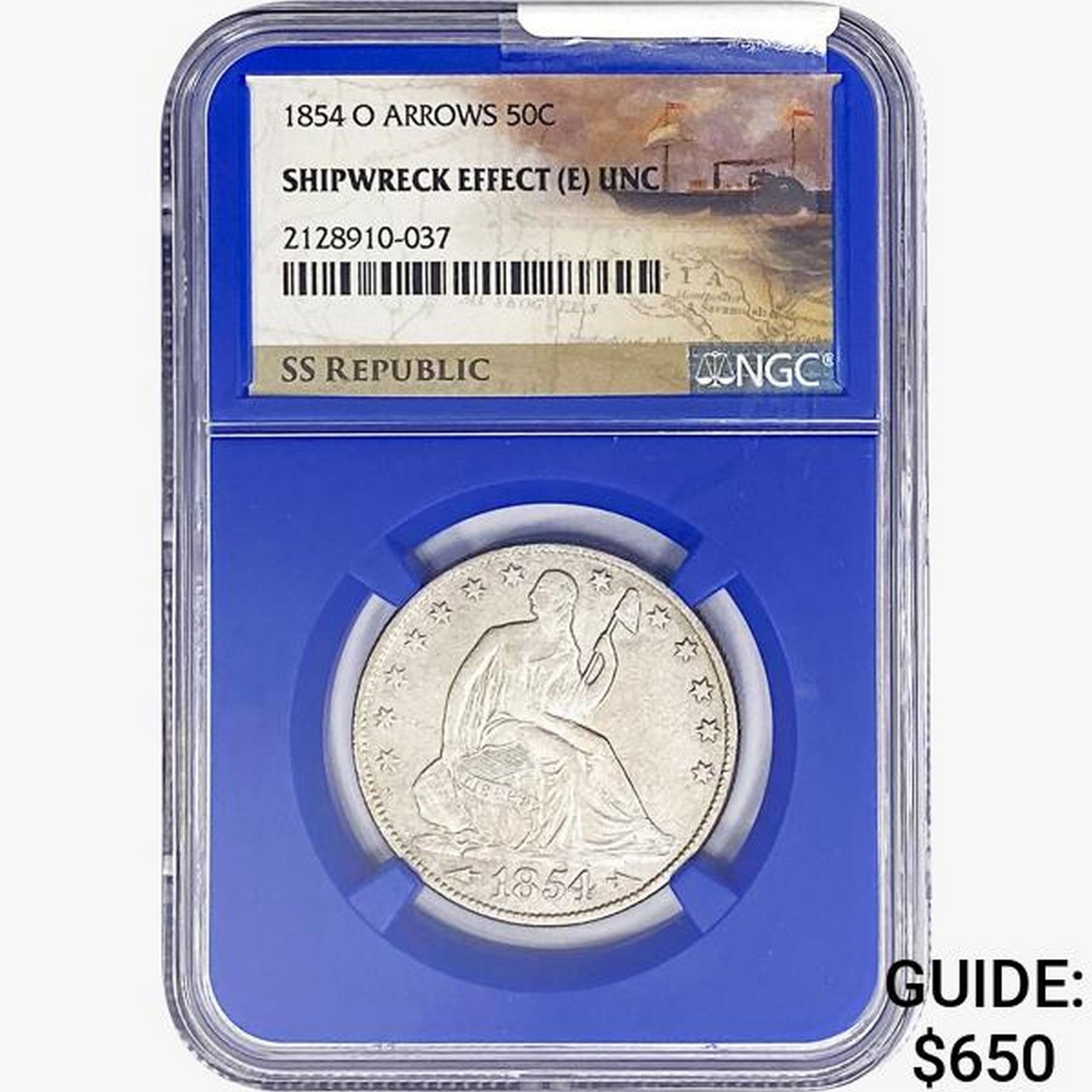 1854-O ARWS SL. 50C Ship. Effect W/ Book Set NGC UNC