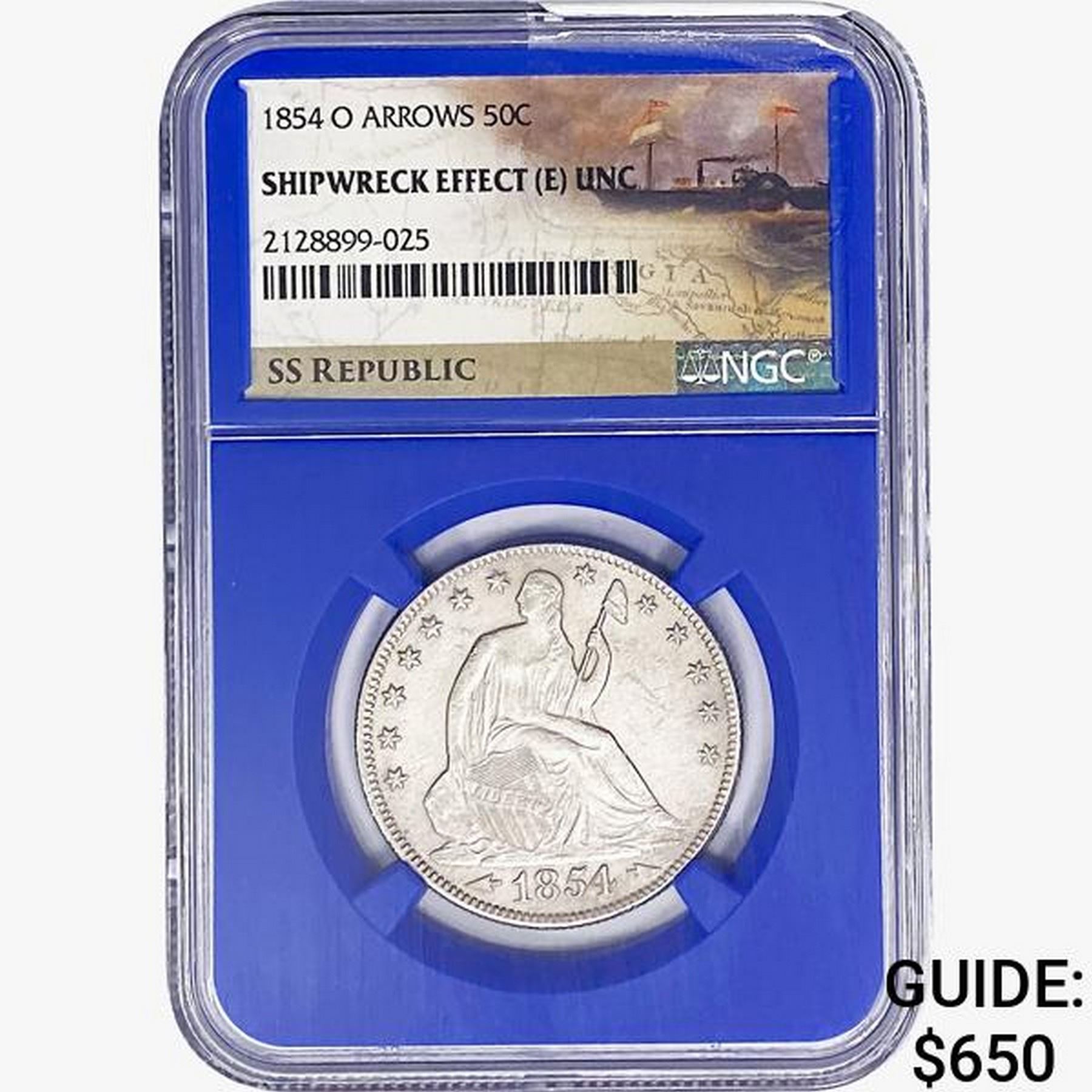 1854-O ARWS SL. 50C Ship. Effect W/ Book Set NGC UNC
