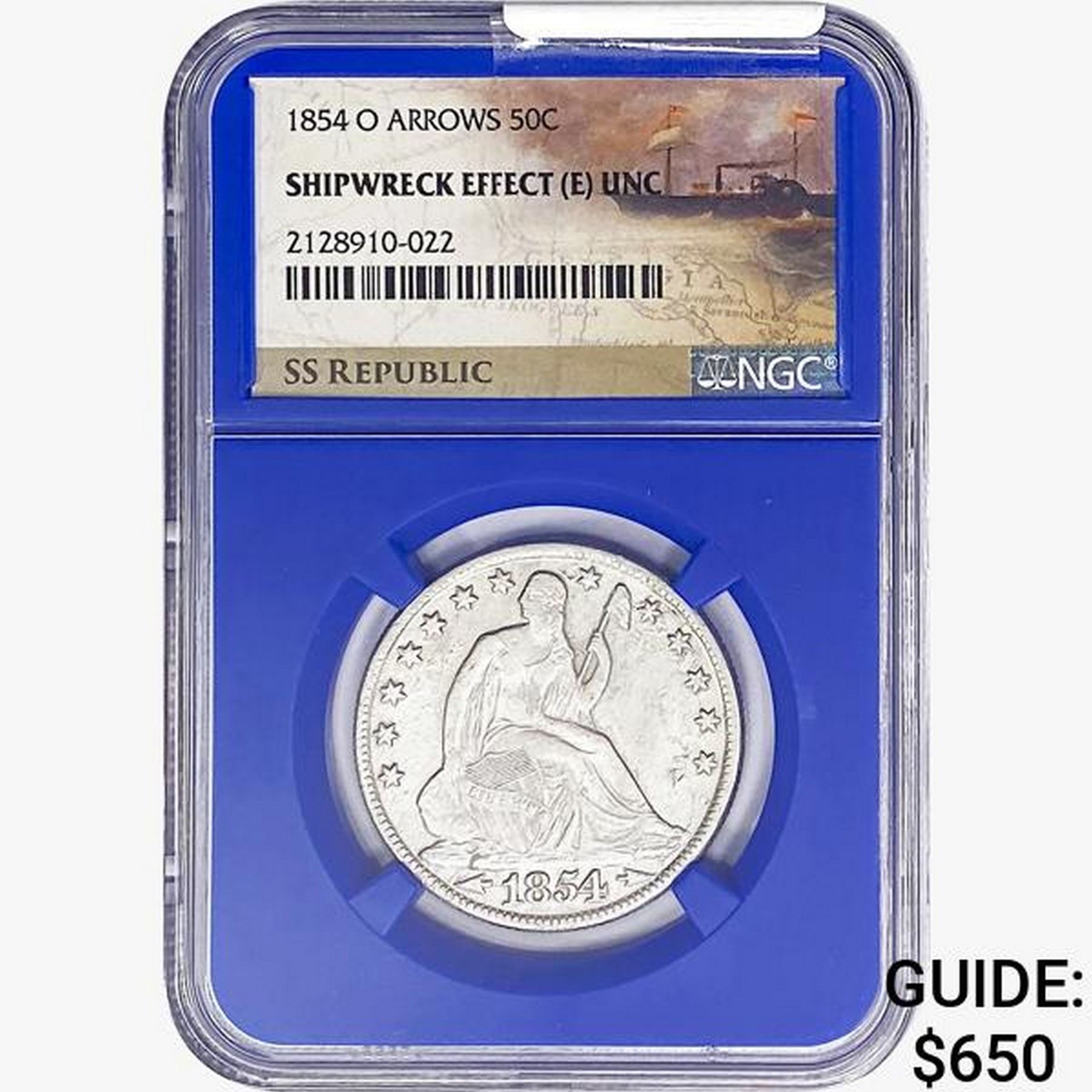 1854-O ARWS SL. 50C Ship. Effect W/ Book Set NGC UNC