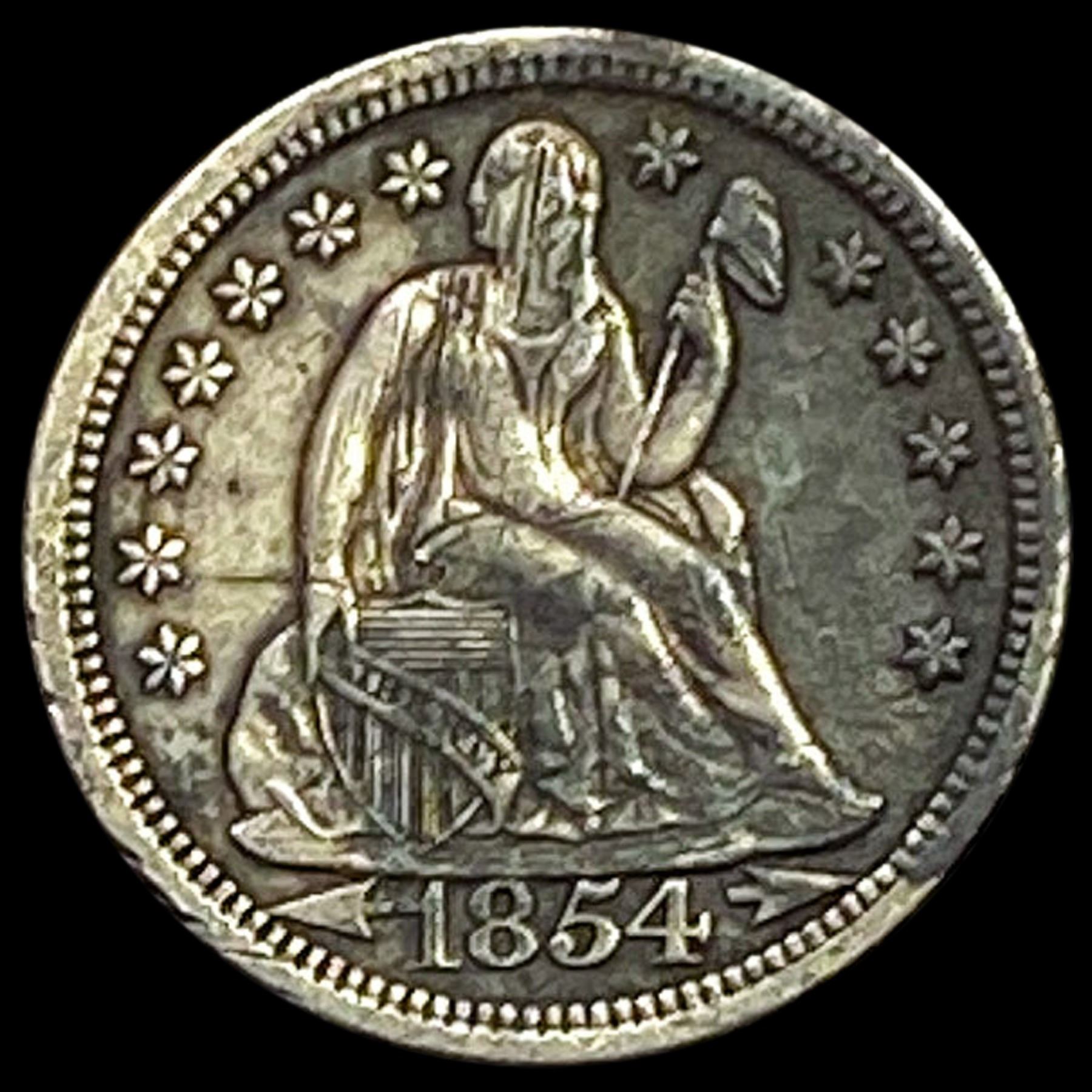 1854-O Arrows Seated Liberty Dime LIGHTLY CIRCULATED