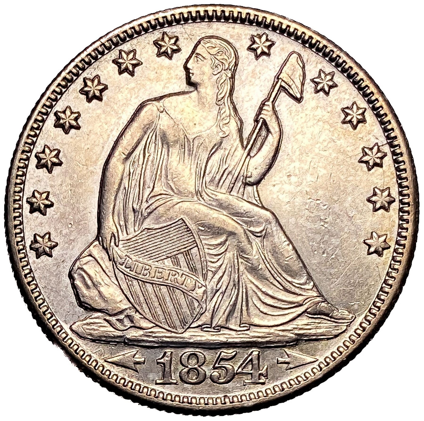 1854-O Arrows Seated Liberty Half Dollar AU+