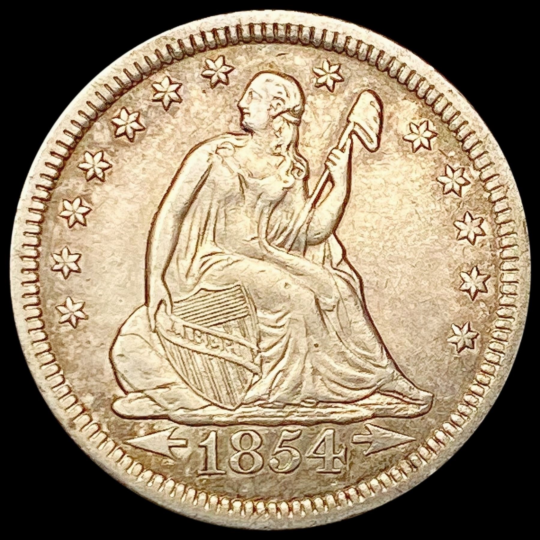 1854-O Arrows Seated Liberty Quarter CHOICE AU
