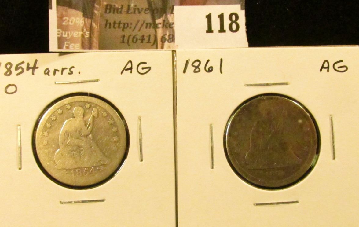 1854 O Arrows at date & 1861 U.S. Seated Liberty Quarters, both AG.