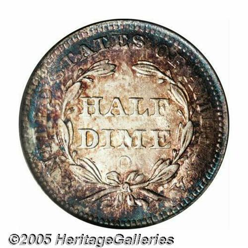 <B>1854-O<H10C> Arrows MS64 PCGS.</B></I> A scarce and important issue, the '54-O survives in smaller numbers than its Philadelphia counterpart because of the heavy usage of small denomination coins in the South. This example shows a ring of gunmetal-blue toning around the rims, framing lavender centers, the reverse of which is joined by dappled gold color. The design features are sharply executed, and the lustrous surfaces are devoid of significant marks. Population: 5 in 64, 10 finer (6/05).
