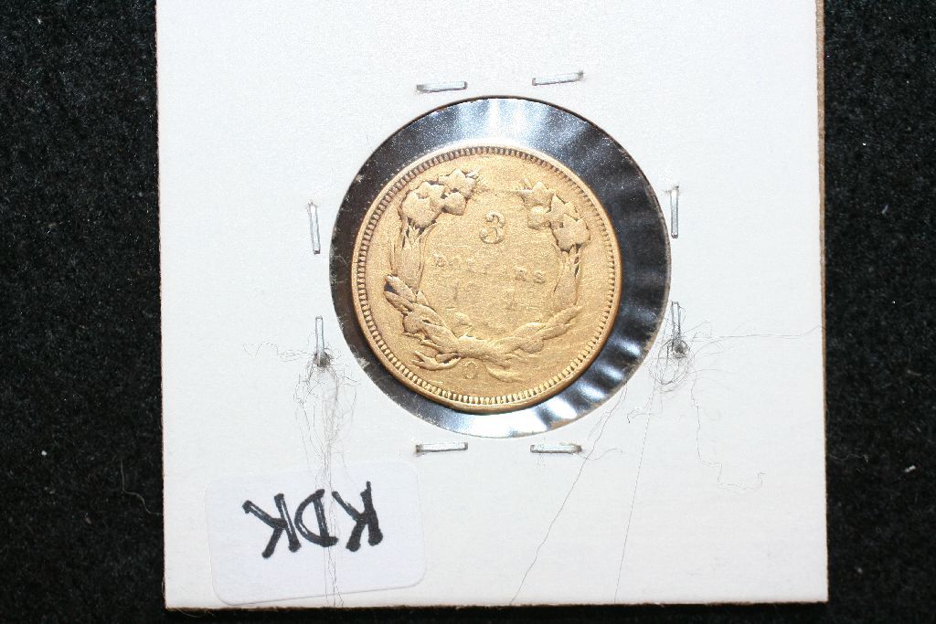 1854-O Indian Princess $3 Gold Coin, Better Date, VF, Loop Removed