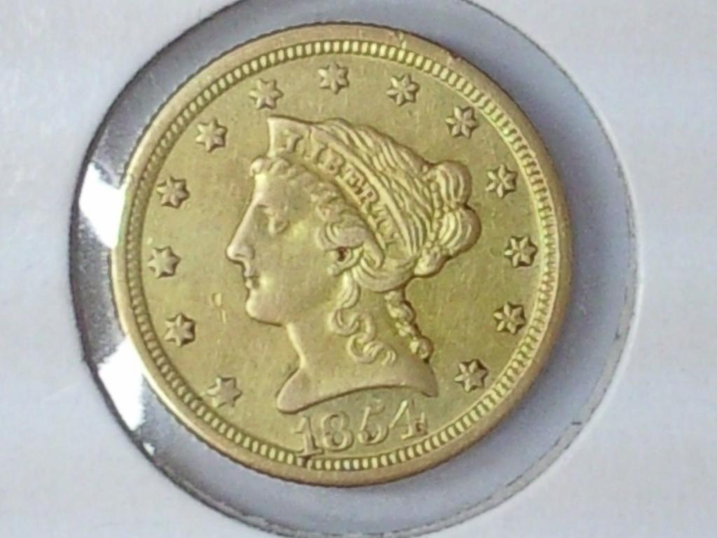 1854-O Liberty $2 1/2 Gold With Solder On Reverse