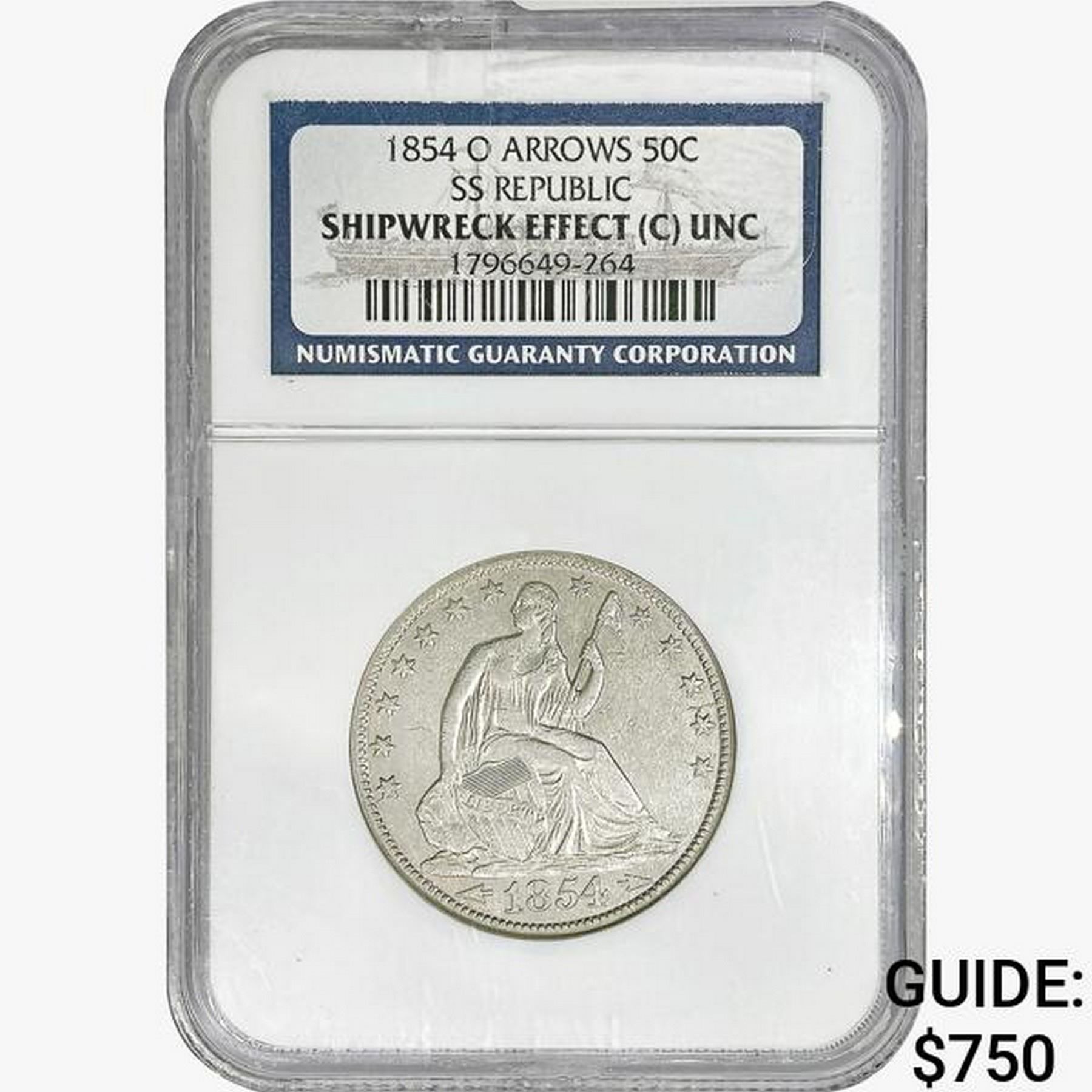1854-O Seated Lib. 50C NGC Shipwreck Effect(C) UNC