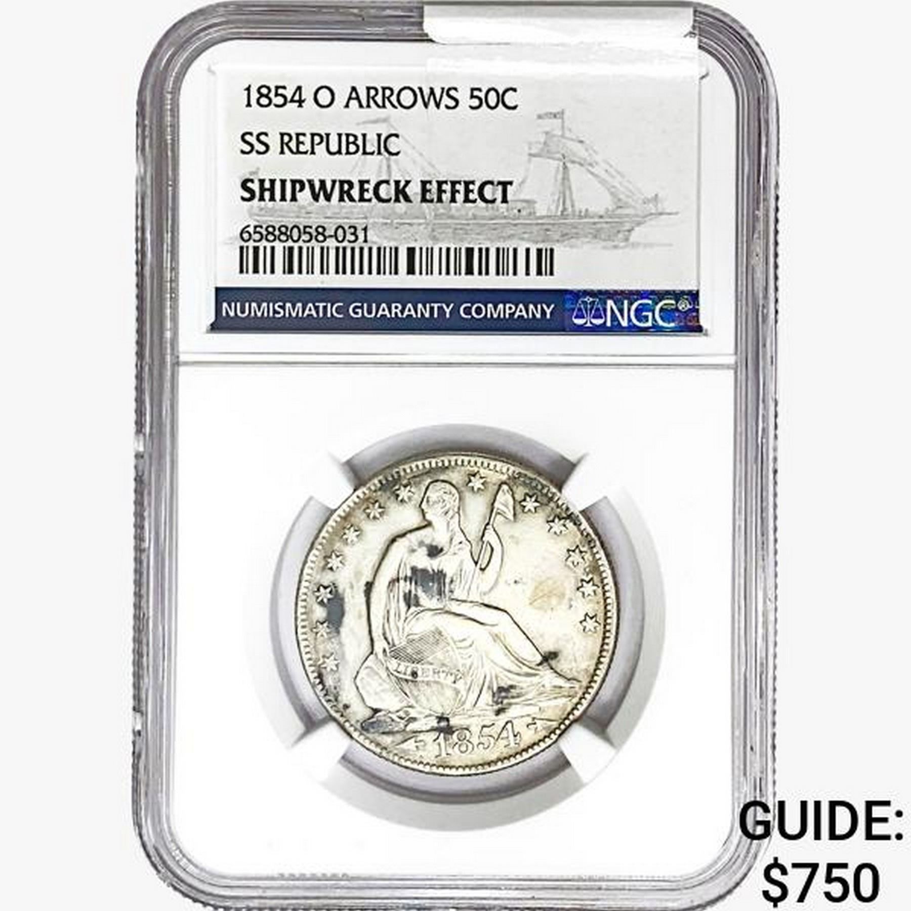 1854-O Seated Lib. 50C NGC Shipwreck Effect SS REP