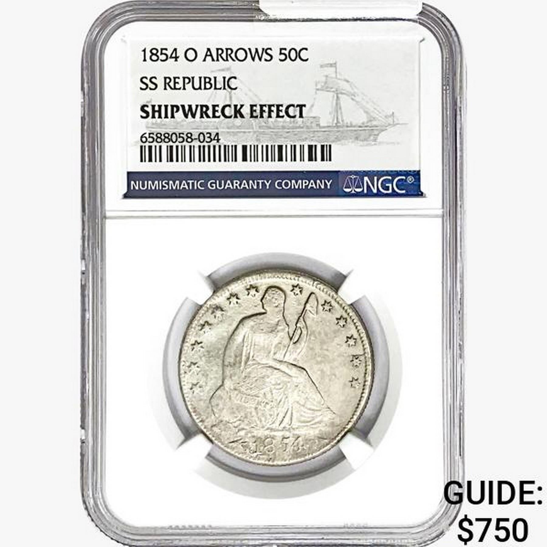 1854-O Seated Lib. 50C NGC Shipwreck Effect SS REP
