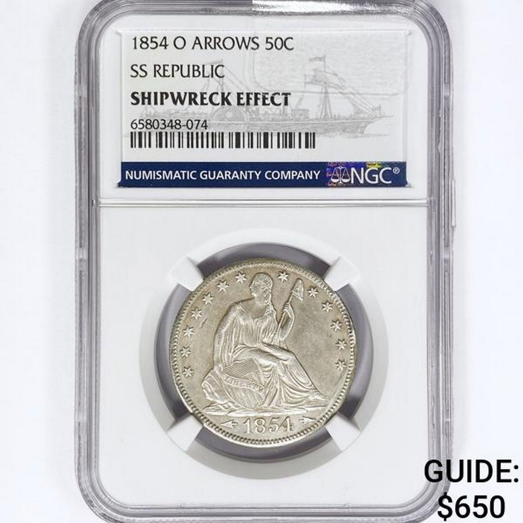 1854-O Seated Lib. 50C NGC Shipwreck SS Rep Bx Set