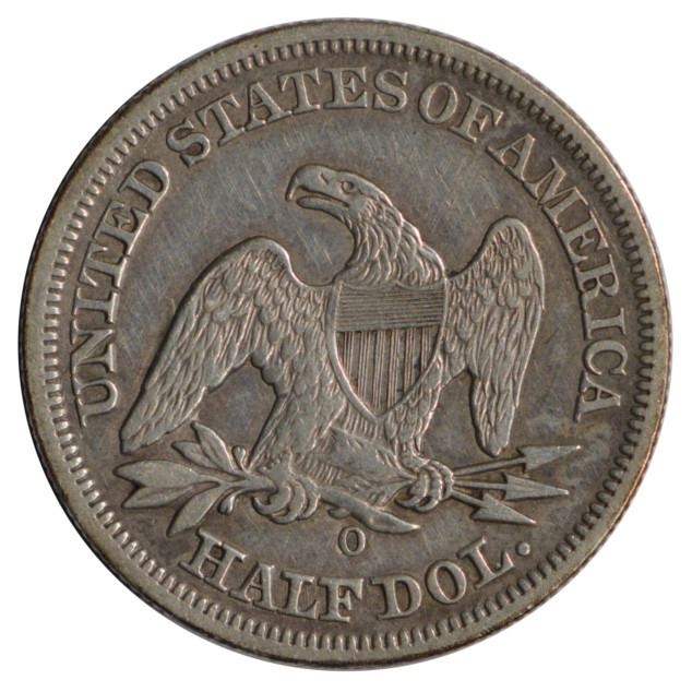 One 1854-O Seated Liberty Half Dollar Coin.