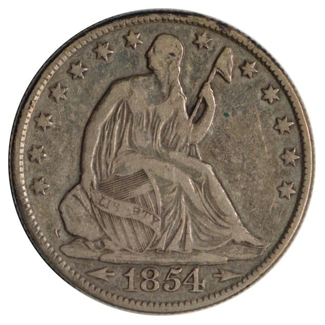 One 1854-O Seated Liberty Half Dollar Coin.