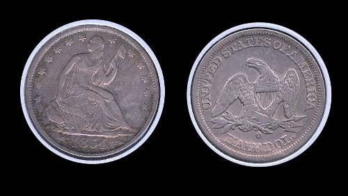 1854-O W/Arrows Seated Half XF details; Weak stgruck on shield, but solid elsewhere, trends $80 VF $125 XF