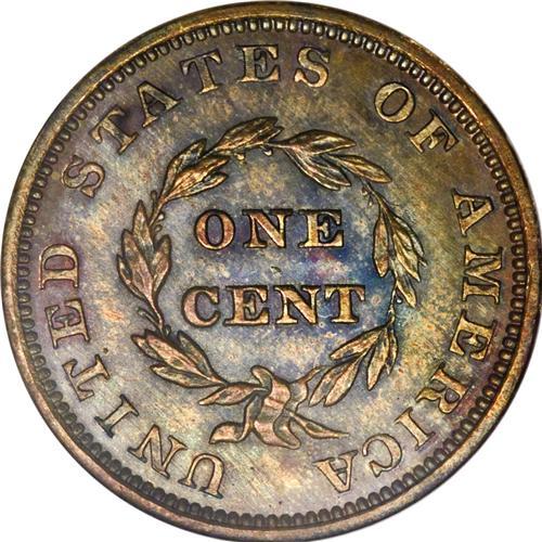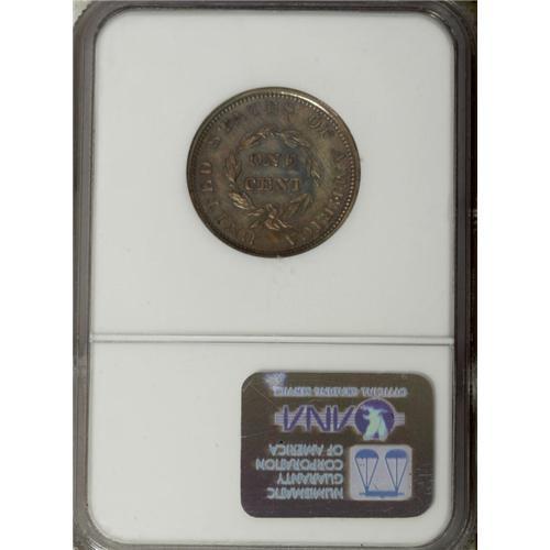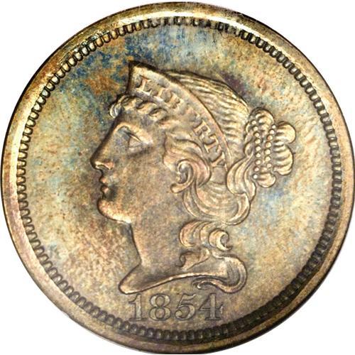 <B>1854 P1C One Cent, Judd-160, Pollock-187, R.4, PR66 Brown NGC.</B></I> The obverse is similar to that used on regular issue 1854 cents, except there are no stars. The denomination is centered on the reverse within a laurel wreath, and the legend UNITED STATES OF AMERICA is around the periphery. Struck in copper or bronze with a plain edge. The surfaces are smooth and glossy and appear to be completely free from carbon spotting, although slight forest-green toning is noted near the centers on each side. An outstanding example of this popular early pattern.<BR><BR><b>Shipping:</b> Coin/Currency (<a target="_blank" href="http://www.heritageauctions.com/common/shipping.php">view shipping information</a>)