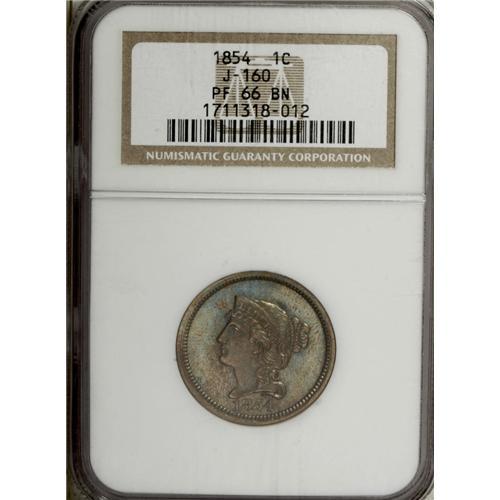 1854 P1C One Cent, Judd-160, Pollock-187, R.4, PR66 Br