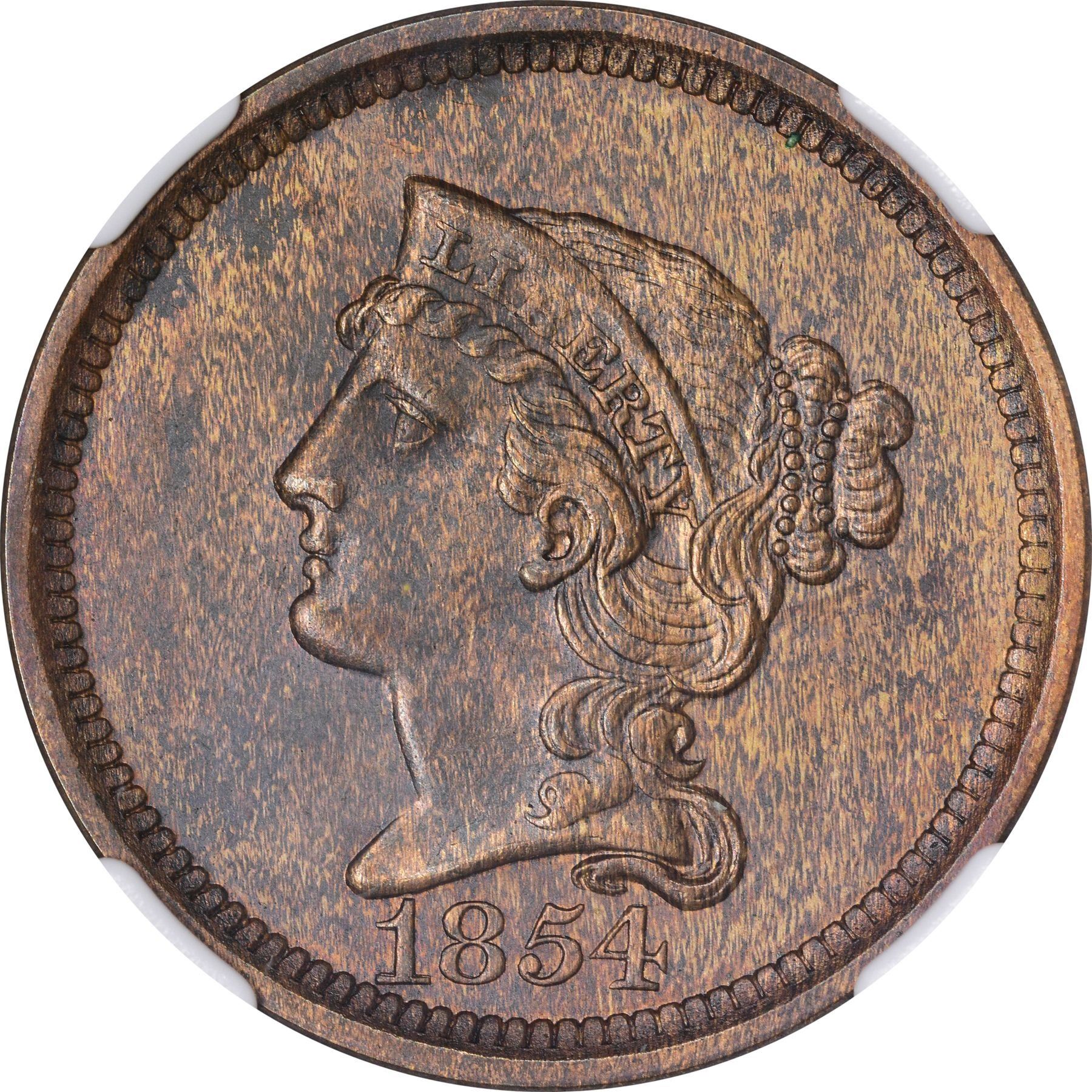 Title: 1854 Pattern 1¢. Judd-161, Pollock-187. Rarity-4. Bronze. Plain Edge. Proof-60 BN NGC.