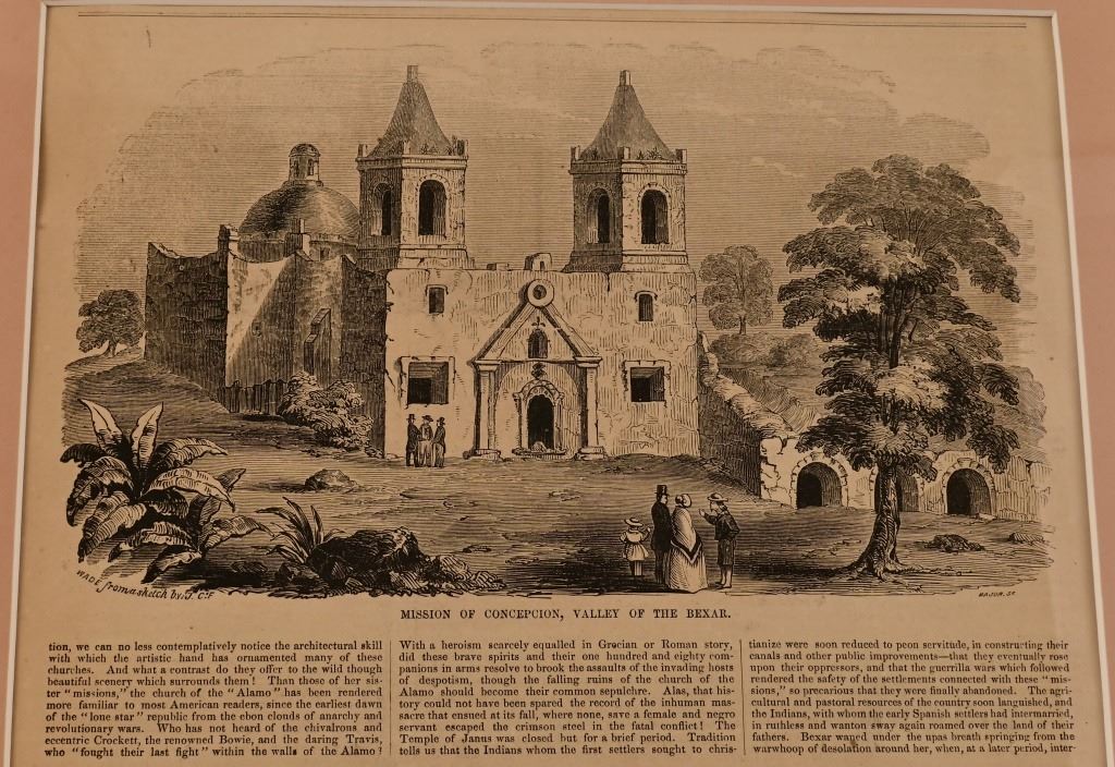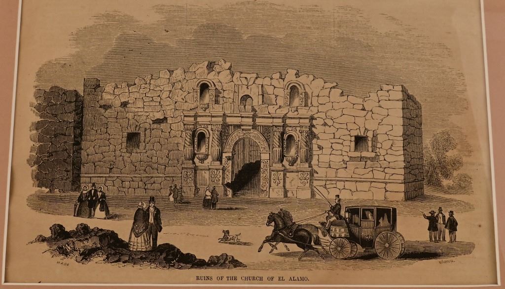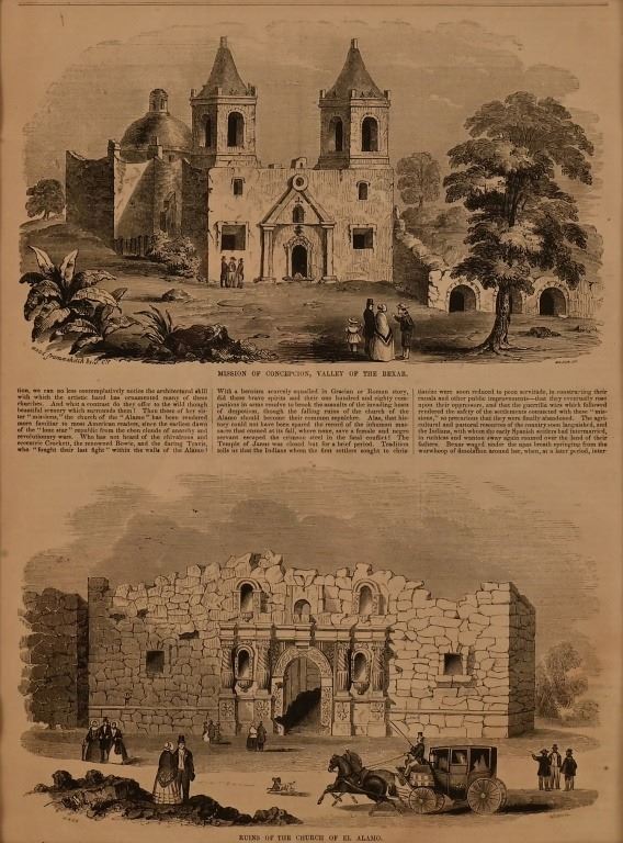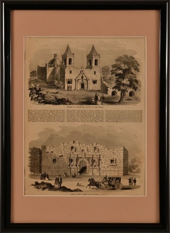 1854 Print of Mission Concepcion and “Ruins of the Church of El Alamo”. San Antonio de Bexar. Circa 10” x 13-1/2”; 14” x 20” overall as framed.