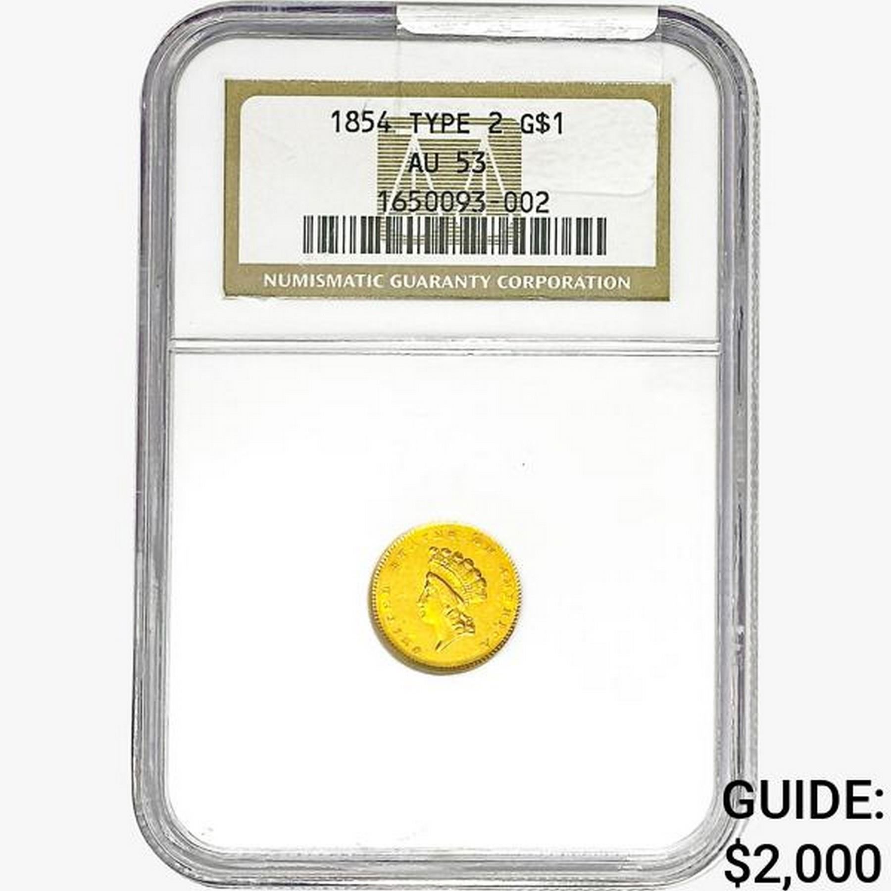 1854 Rare Gold Dollar NGC AU53