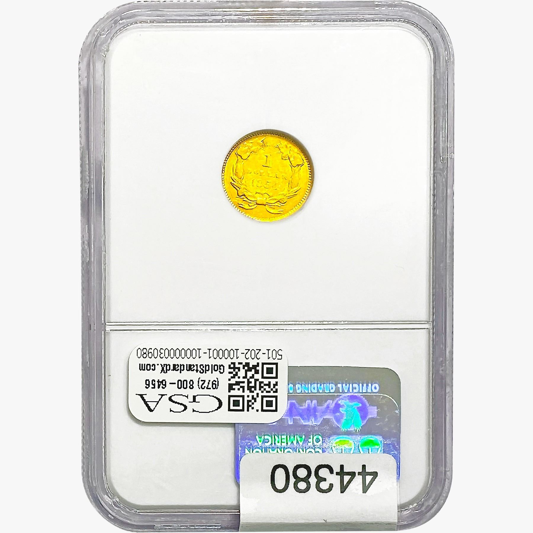 e. Coins sold referencing a third-party grading service are sold “AS IS” without any express or implied warranty, except for a guarantee by GSA that they are genuine. Removal or alteration of the holder, voids all of Bidder’s claims concerning that Product. Certain warranties may be available from the grading services and Bidders are referred to them for further details: Numismatic Guaranty Corporation (NGC), PO Box 4776, Sarasota, FL 34230, www.ngccoin.com/services/writtenguarantee.asp; Professional Coin Grading Services (PCGS), PO Box 9458, Newport Beach, CA 92658, www.pcgs.com/guarantee.html; ANACS, 6555 S. Kenton St., Ste. 303, Englewood, CO 80111; and Independent Coin Grading Co. (ICG), 7901 East Bellview, Ave., Suite 50, Englewood, CO 80111.
