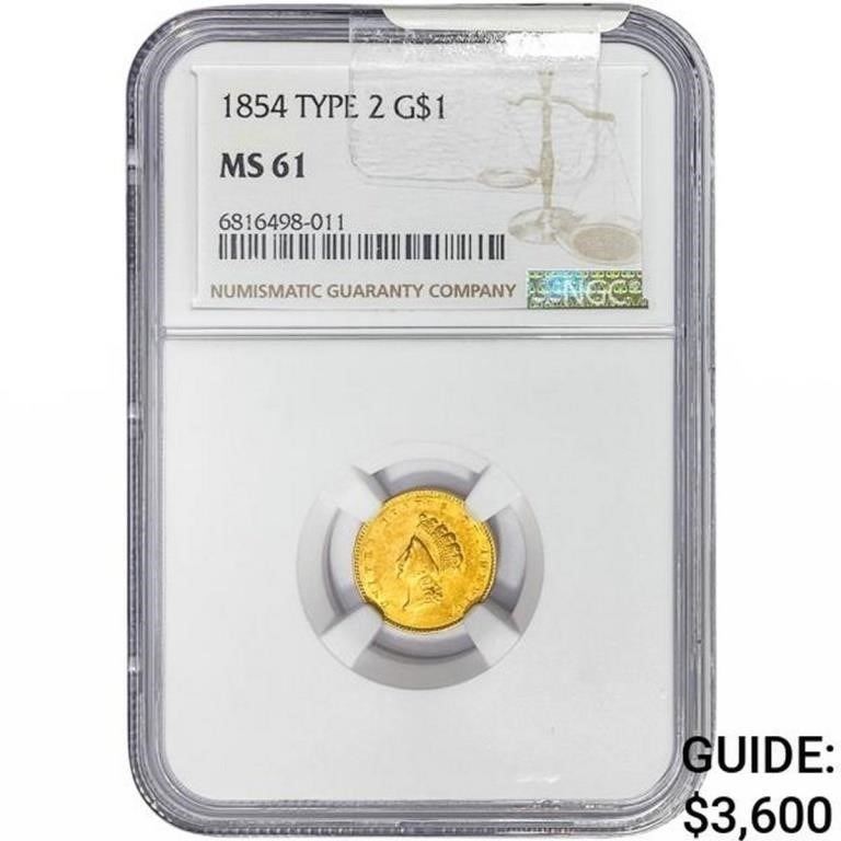 1854 Rare Gold Dollar NGC MS61