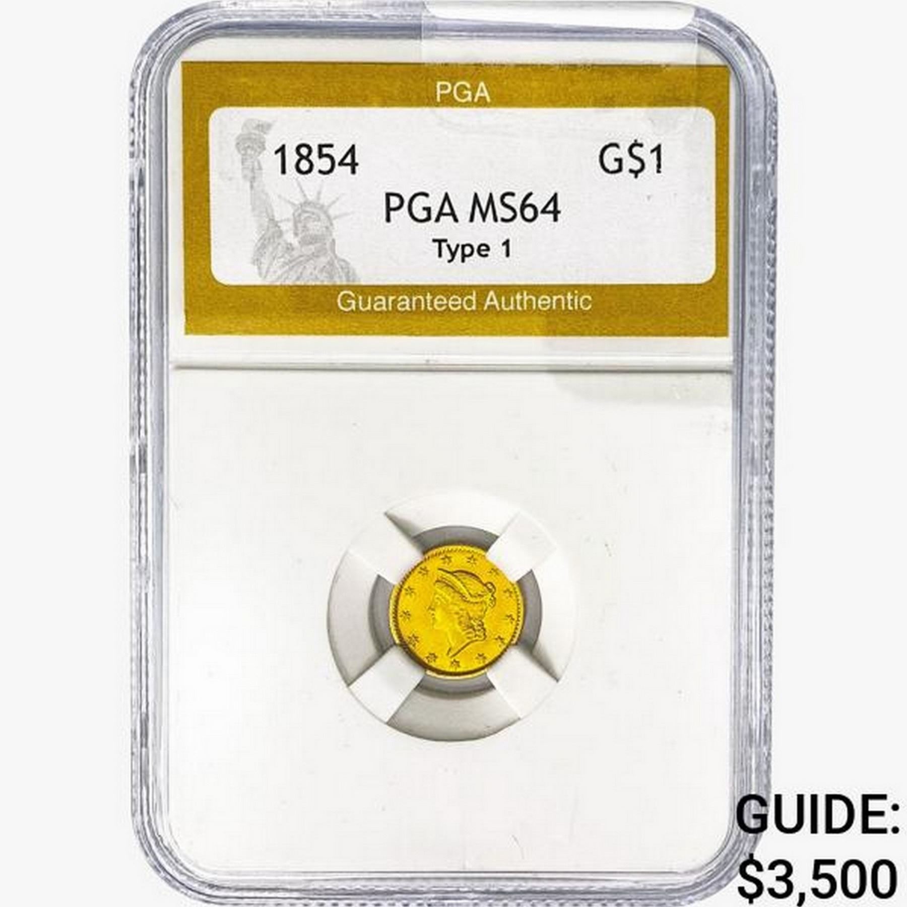 1854 Rare Gold Dollar PGA MS64 TYPE 1