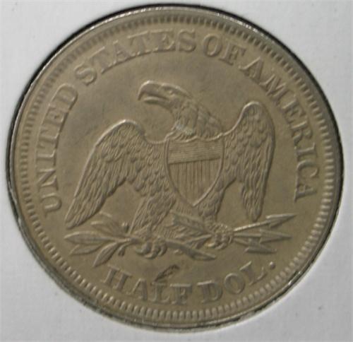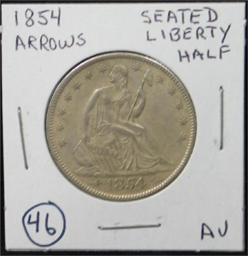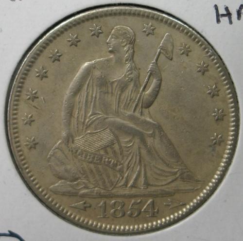 1854 SEATED LIBERTY HALF DOLLAR. AU.