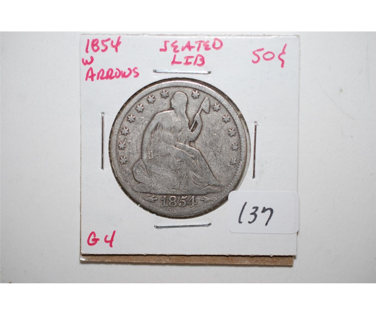 1854 Seated Liberty Half Dollar With Arrows; G4; EST. $30-40