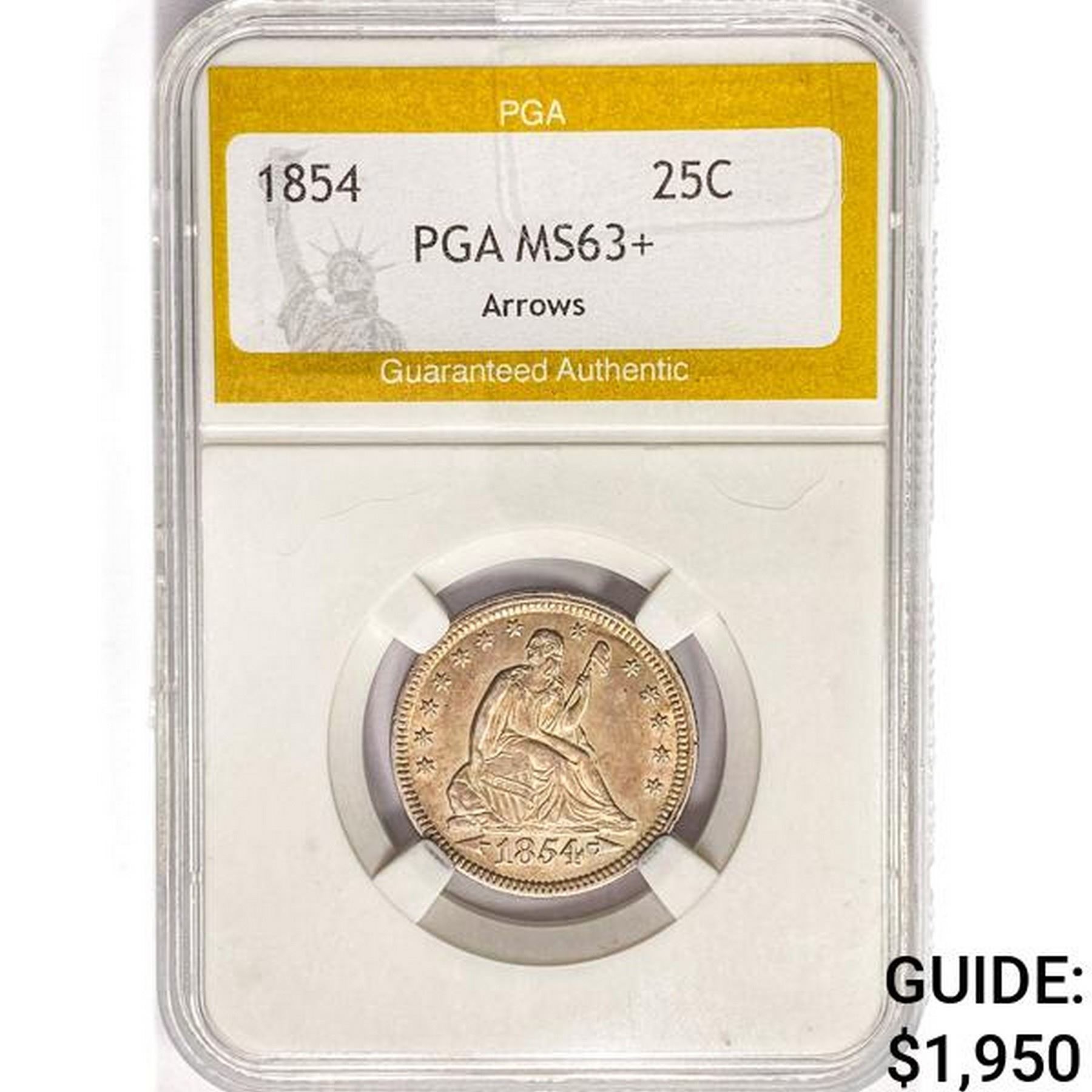 1854 Seated Liberty Quarter PGA MS63+ Arrows