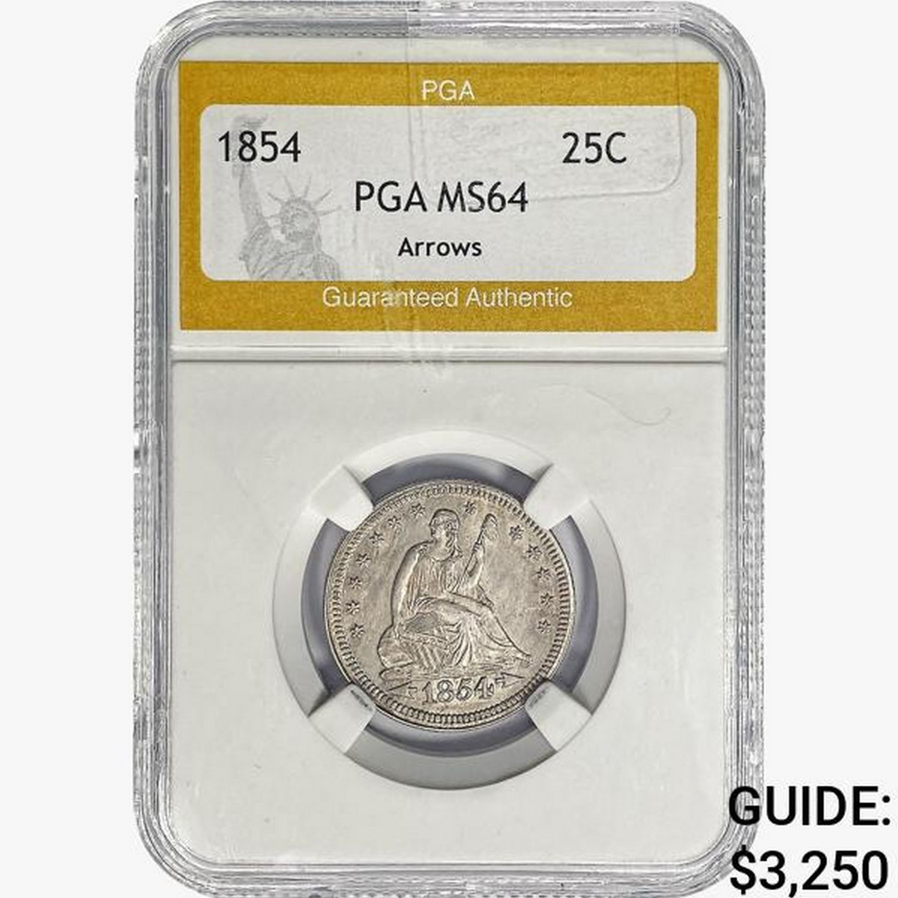 1854 Seated Liberty Quarter PGA MS64 Arrows