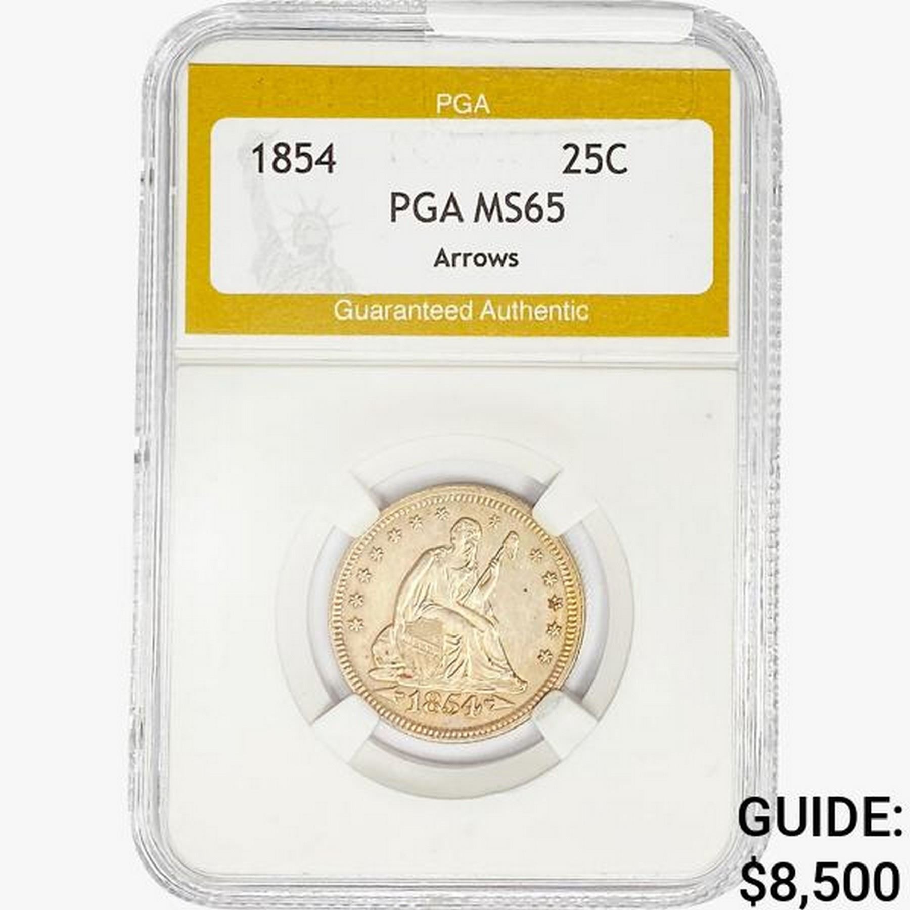 1854 Seated Liberty Quarter PGA MS65 Arrows