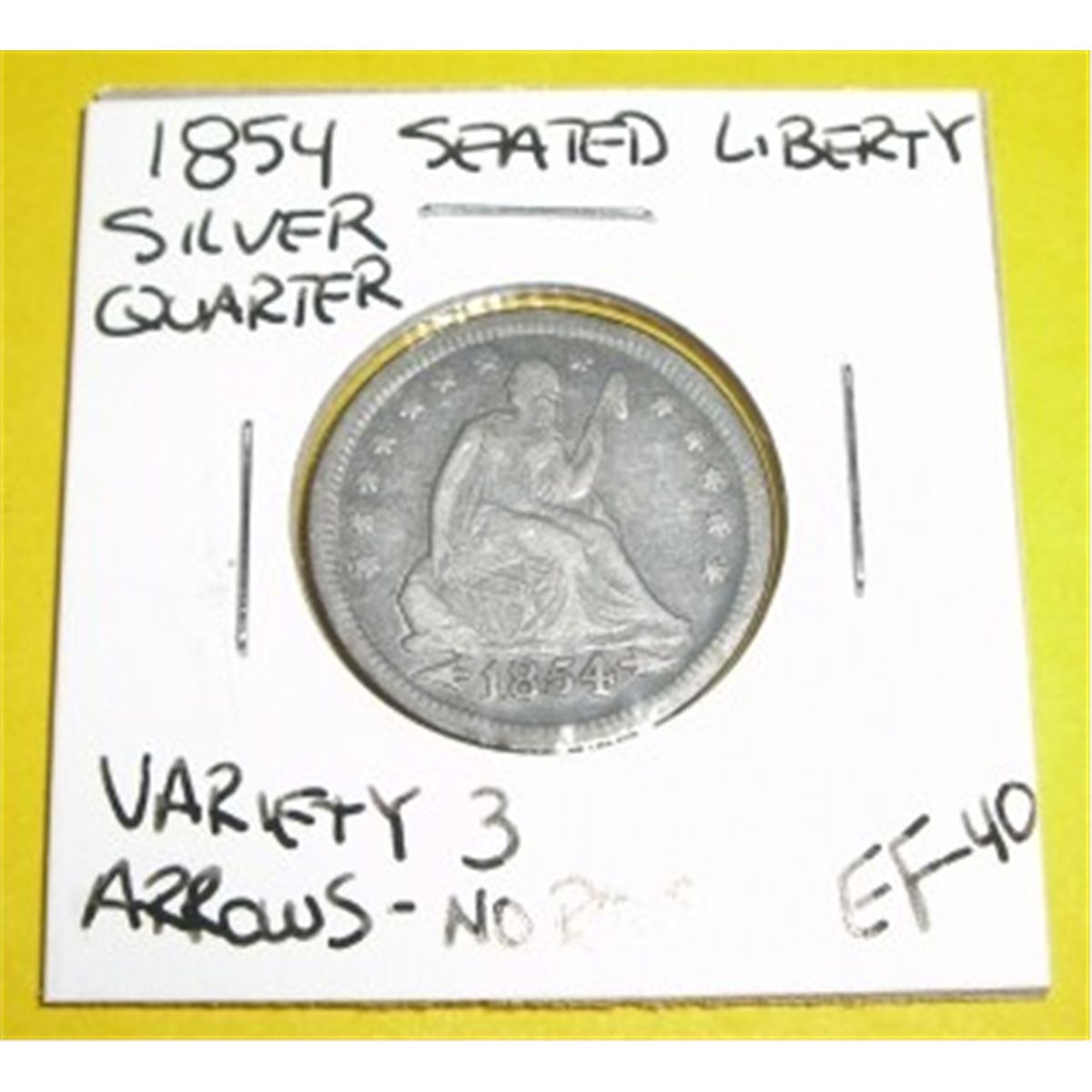 1854 Silver Quarter Dollar Seated Liberty Variety 3 *RARE EXTRA FINE-40 GRADE ARROWS & NO RAYS*!! ***Coin & Currency Grades, Conditions & Values are not Safe Deposit Coins Responsibilty. Grades, Conditions & Values are determined by Consigner(s) & Buyers***