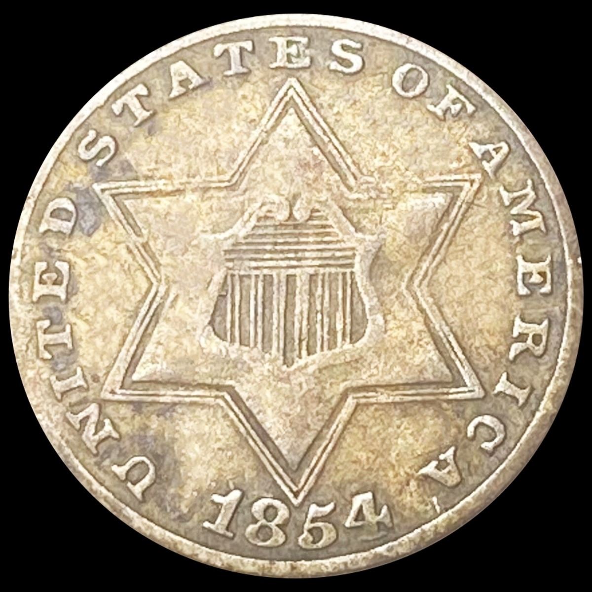 1854 Silver Three Cent CLOSELY UNCIRCULATED
