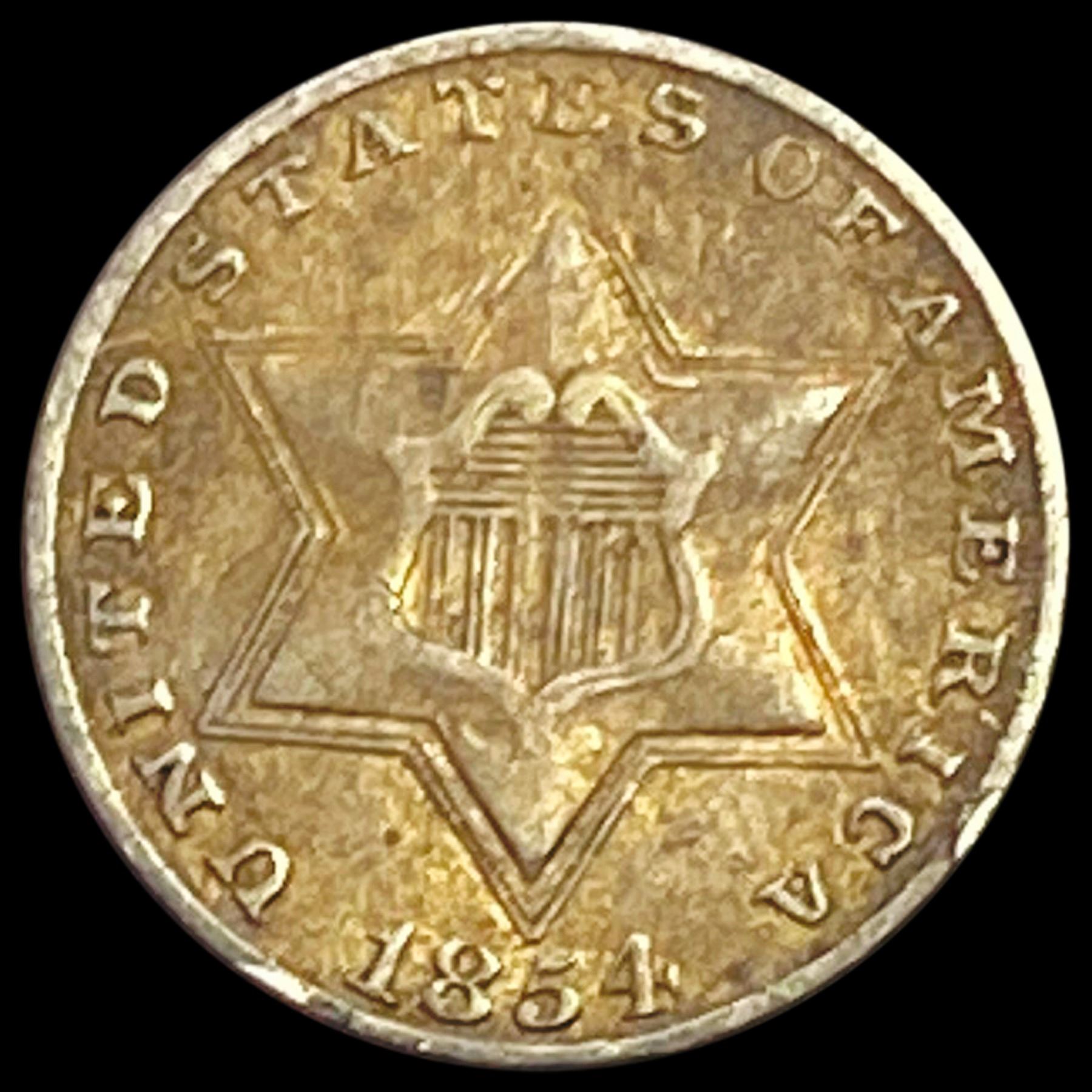 1854 Silver Three Cent LIGHTLY CIRCULATED