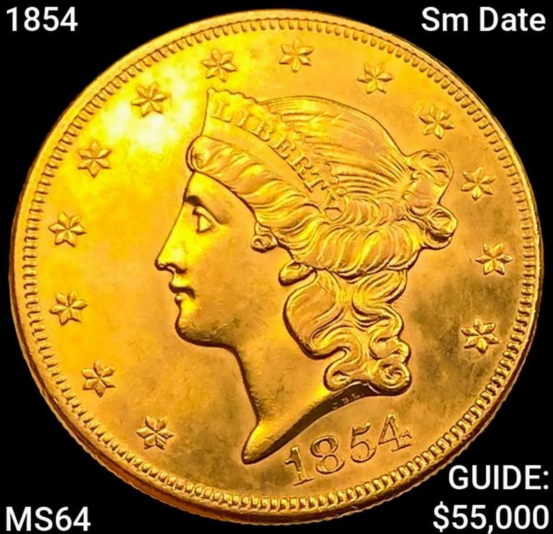 1854 Sm Date $20 Gold Double Eagle CHOICE BU