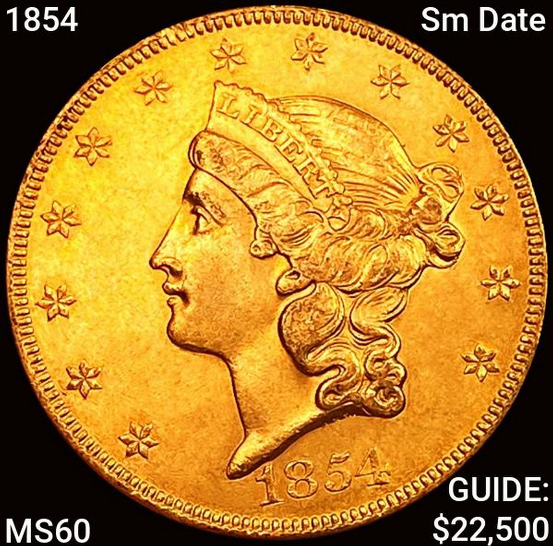 1854 Sm Date $20 Gold Double Eagle UNCIRCULATED