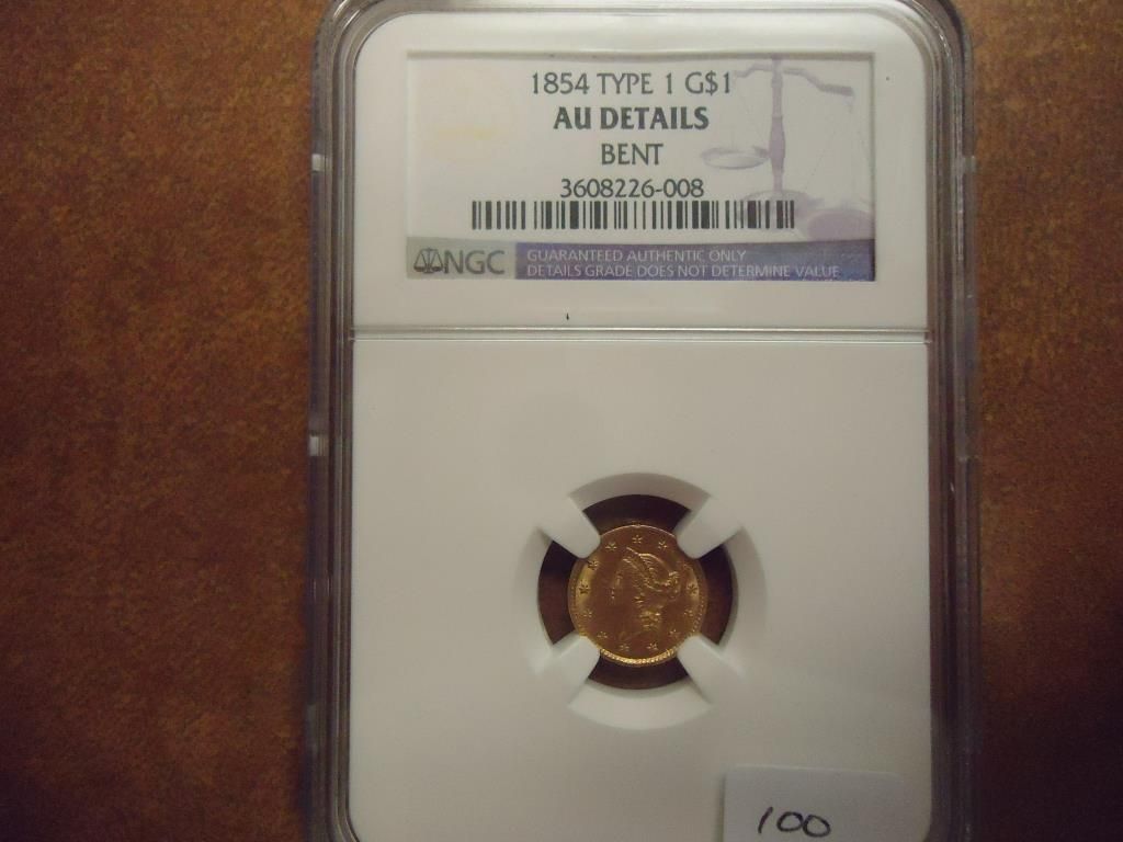 1854 TYPE I GOLD $ NGC AU DETAILS