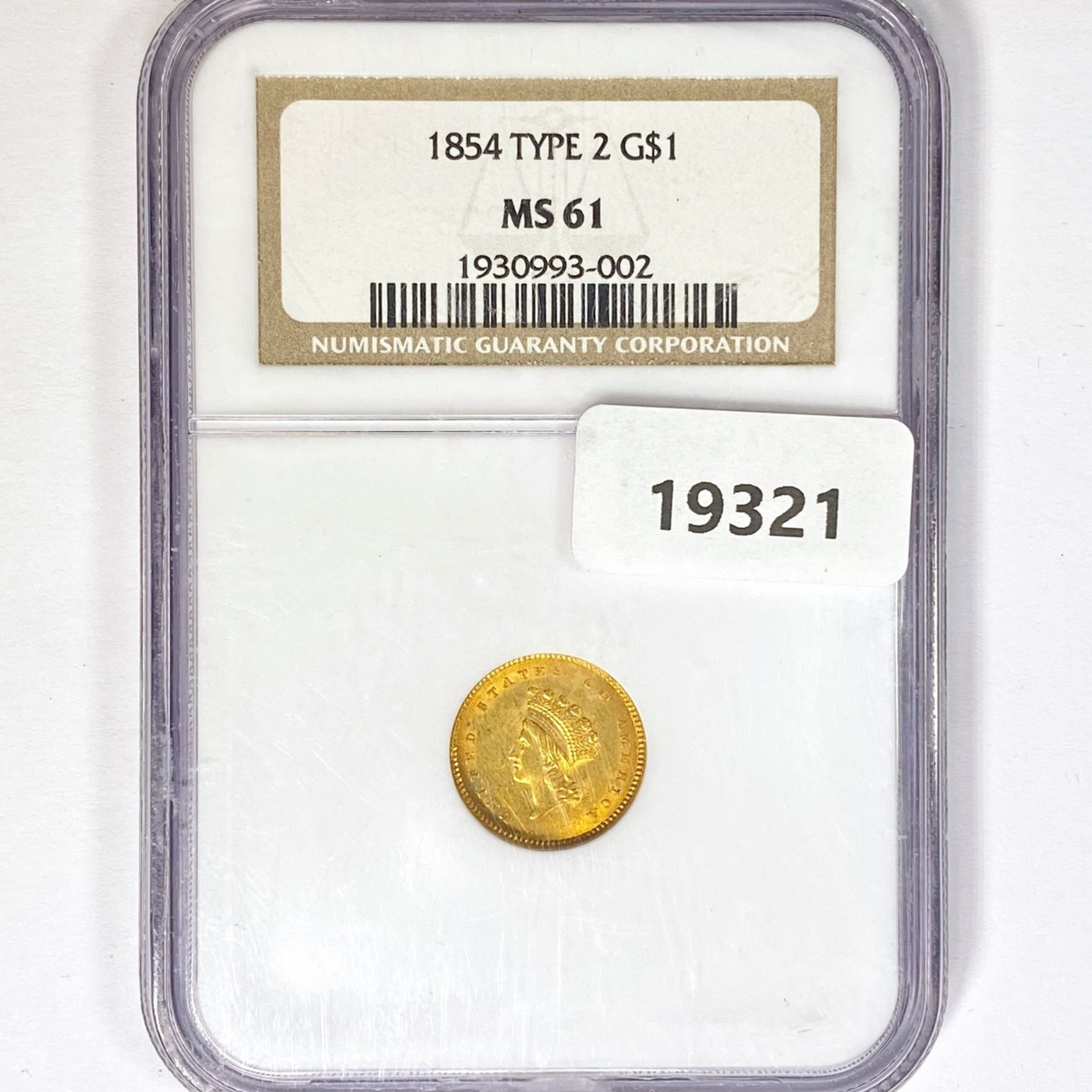 1854 Ty 2 Rare Gold Dollar NGC MS61
